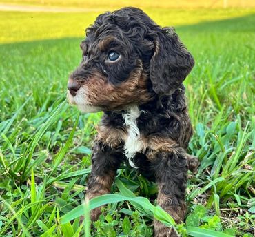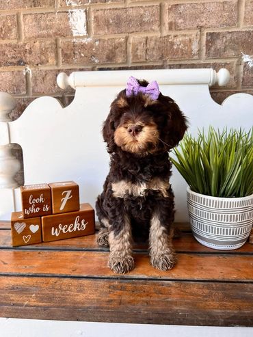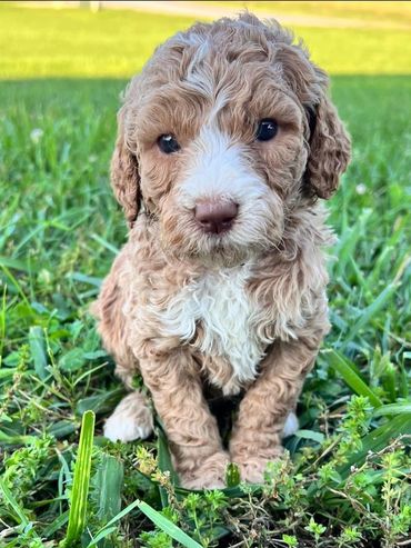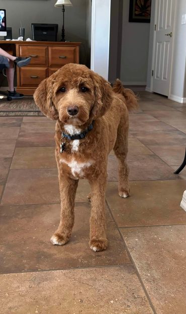 Brody Mahomes is a remarkable Oliver baby. He possesses extensive training, is highly motivated by food, and exhibits exceptional athleticism. His enthusiasm for fetch is evident, as he is often seen with a toy in his mouth, showering affection on his human companions. His liver-colored nose and stunning coat are characteristic of his lineage. His green eyes and exquisite caramel coloring are distinctive features of a Brody offspring. His puppies inherit his eagerness to learn, along with a commendable temperament and obedience akin to that of a professional.