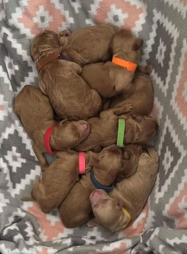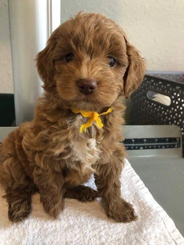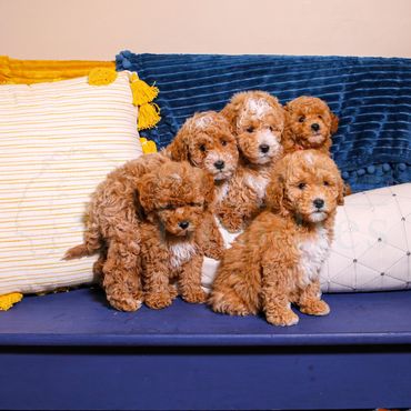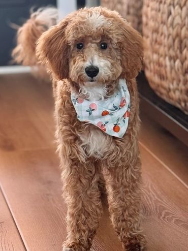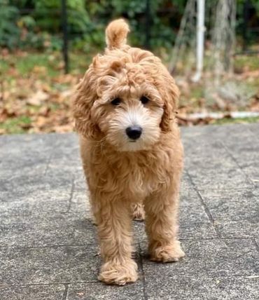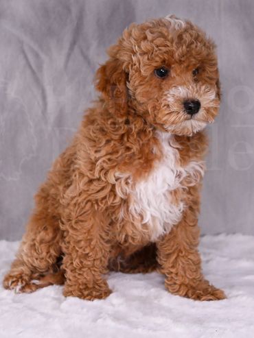 Kobe Bean is our most diminutive yet highly athletic male. He possesses a moderate energy level and consistently seeks to satisfy his human companions. His offspring are small and lightweight, characterized by long, athletic legs. As our sole curly-coated male, his curls are not only beautiful but also easily maintainable. He produces remarkable color variations and is free from any genetic defects. Though small in stature, he is undeniably powerful.