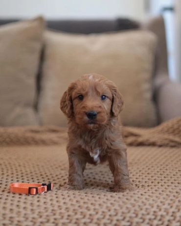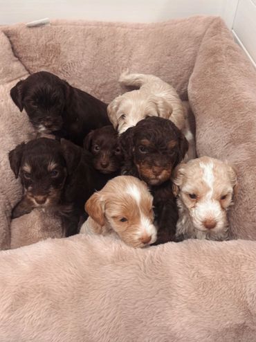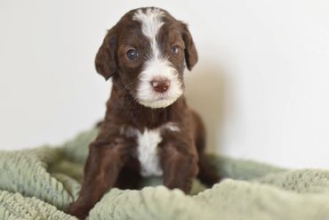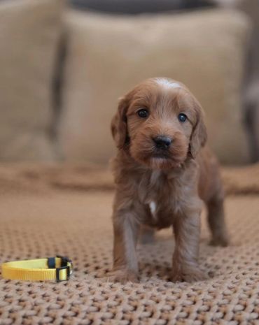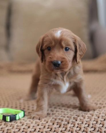 Oakley Ridge is another Oliver offspring. His straight coat is gorgeous. Oakley is extremely smart and very eager to please. He is food motivated and medium energy. His pups are adorable and take after him and Grand dad! He throws some beautiful abstract markings and the prettiest straight and wavy coats.